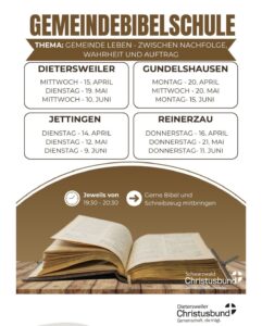 Gemeindebibelschule 14. April/12. Mai/ 09. Juni